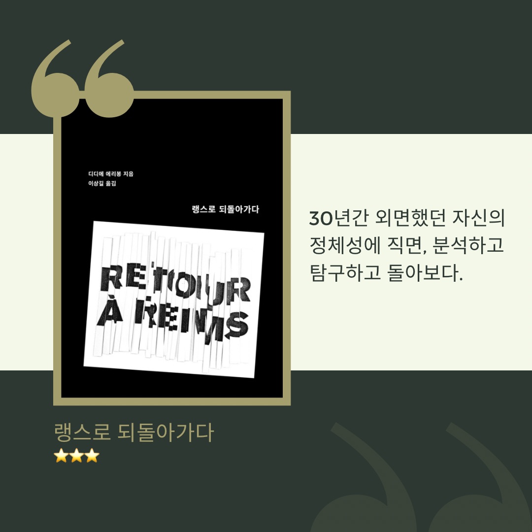 2021년 올해의 책으로 추천했던 #랭스로되돌아가다 를 재독했다. 막독 모임에서 같이 읽었고 어제 모임이 있었다.
