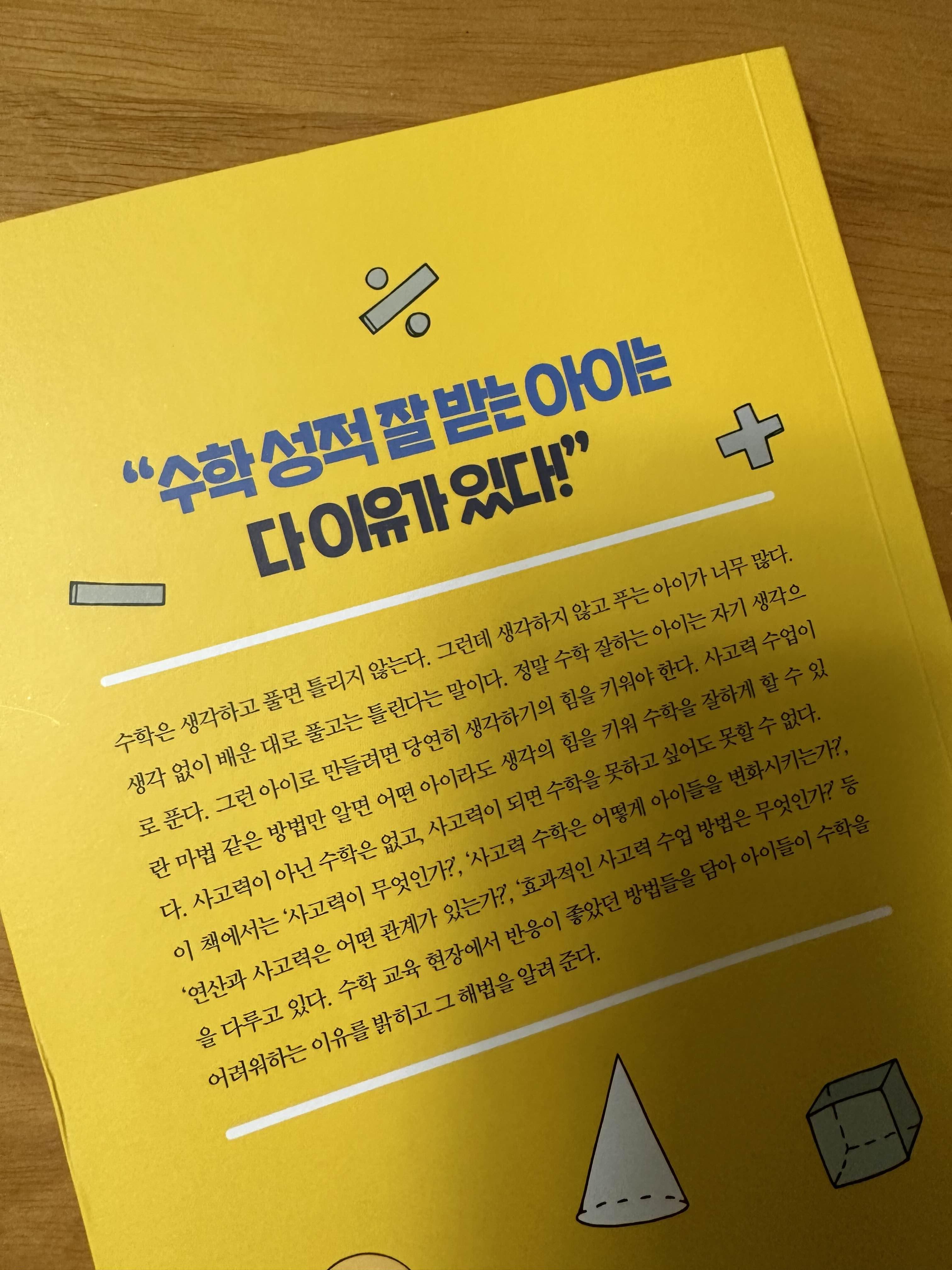 책 내용을 한 마디로 한다면 수학은 생각하는 힘을 키워야 한다는 거다.